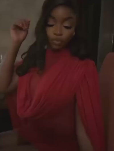 The Maya Dress, a striking red confection, embodies the delicate interplay of boldness and elegance. Crafted with sheer mesh and adorned with long sleeves, it invites an air of mystery while caressing the silhouette. This exquisite piece transforms any occasion into a canvas of sophistication and allure.